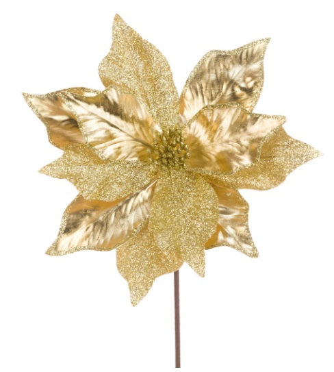 Artificial Glitter Poinsettia Stem